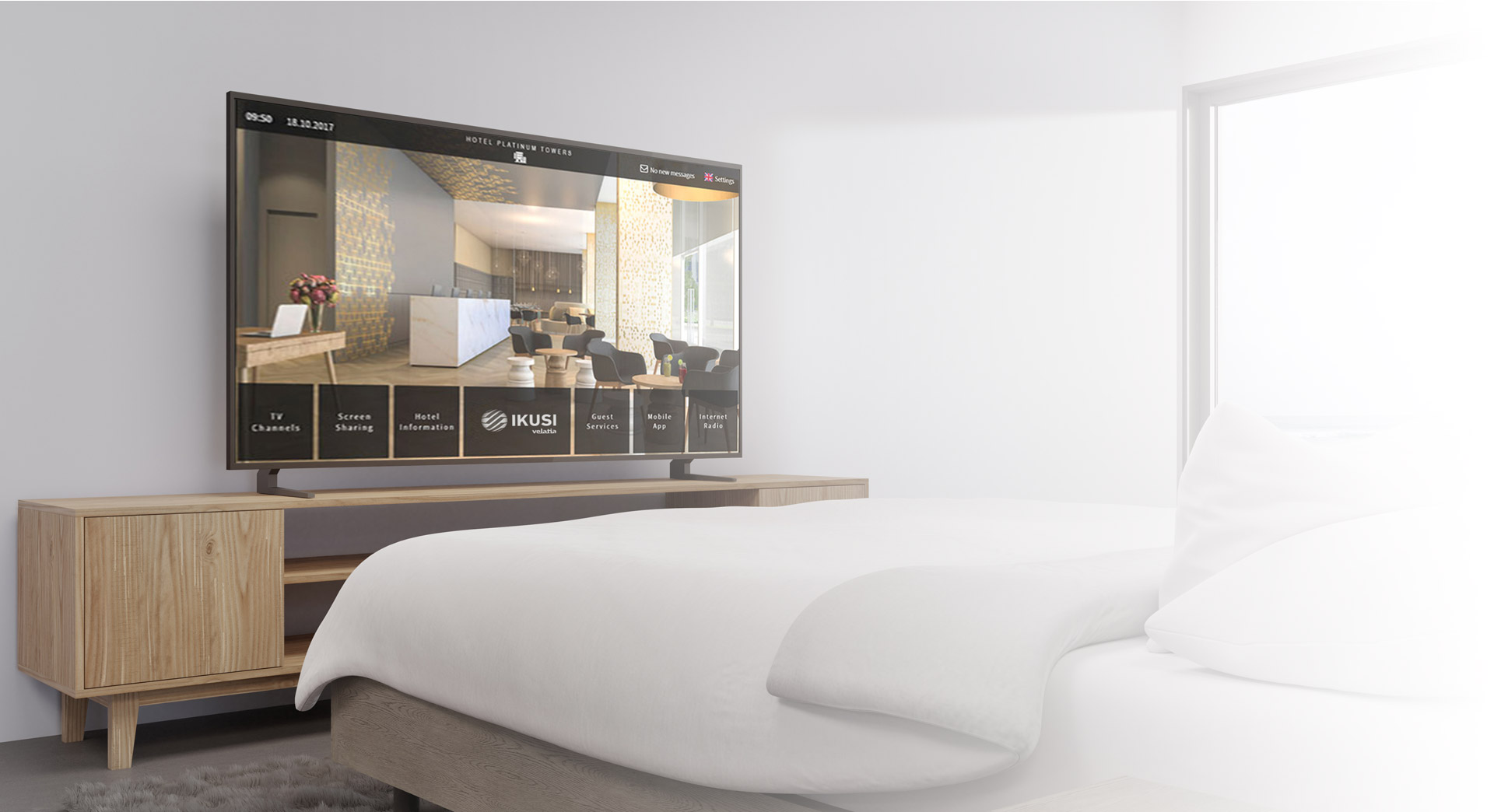 Refuerzo de la imagen corporativa del hotel gracias a un Portal de Entrada en el que se accede a las aplicaciones nativas, gestión de canales y televisiones. Mantiene informado al huésped